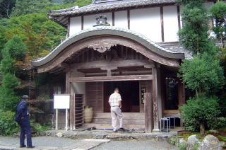 阿弥陀寺正面 ガラス越しに中庭を見る